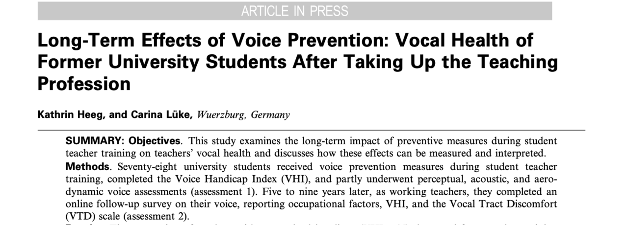 17.12.2025Die Studie von Dr. Kathrin Heeg und Prof. Dr. Carina Lüke untersucht die langfristigen Auswirkungen präventiver Maßnahmen in der Lehramtsausbildung auf die Stimmgesundheit von Lehrkräften und erörtert, wie diese Effekte gemessen und interpretiert werden können.